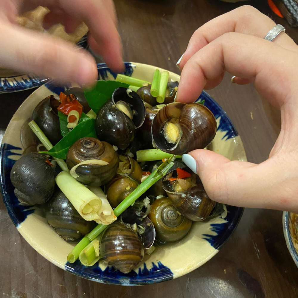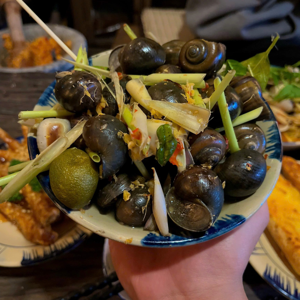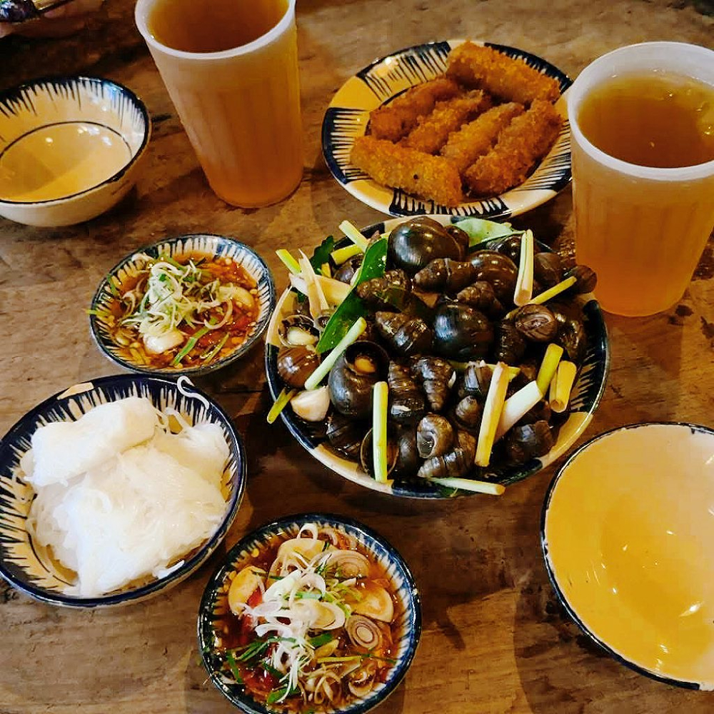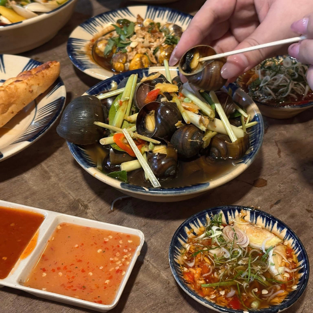 Trải nghiệm: Khều một con ốc nóng hổi, chấm ngập trong bát nước mắm sóng sánh, húp thêm một chút nước ốc luộc thơm dịu – tất cả tạo nên một cảm giác ấm áp, thân thuộc như những buổi chiều la cà phố xá.